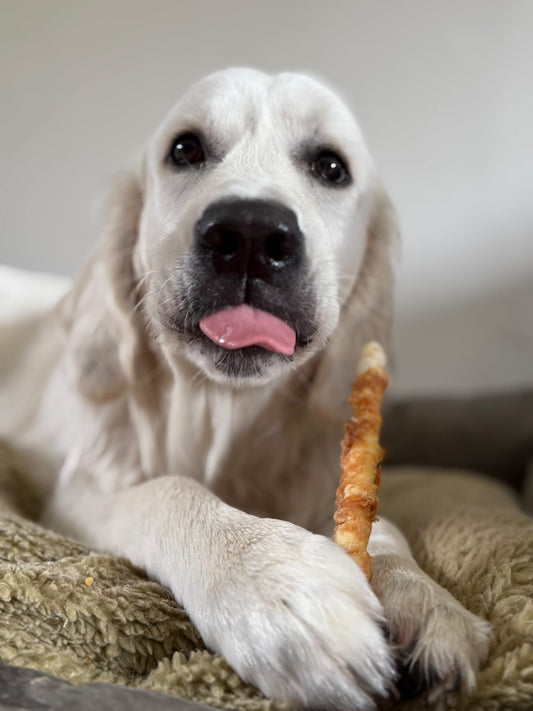 Geef jouw hond de smaak die hij verdient met onze Hondensnacks met kip! Deze heerlijke traktaties zijn gemaakt van 100% kippenvlees, zorgvuldig geselecteerd voor een onweerstaanbare smaak en een gezonde voeding. Kip is een uitstekende bron van magere eiwitten, perfect voor het ondersteunen van een sterke spieropbouw en energieke dagen.
