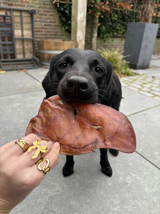 Onze varkenssnacks zijn vrij van kunstmatige kleur- en smaakstoffen, zodat je jouw hond met een gerust hart kunt verwennen.