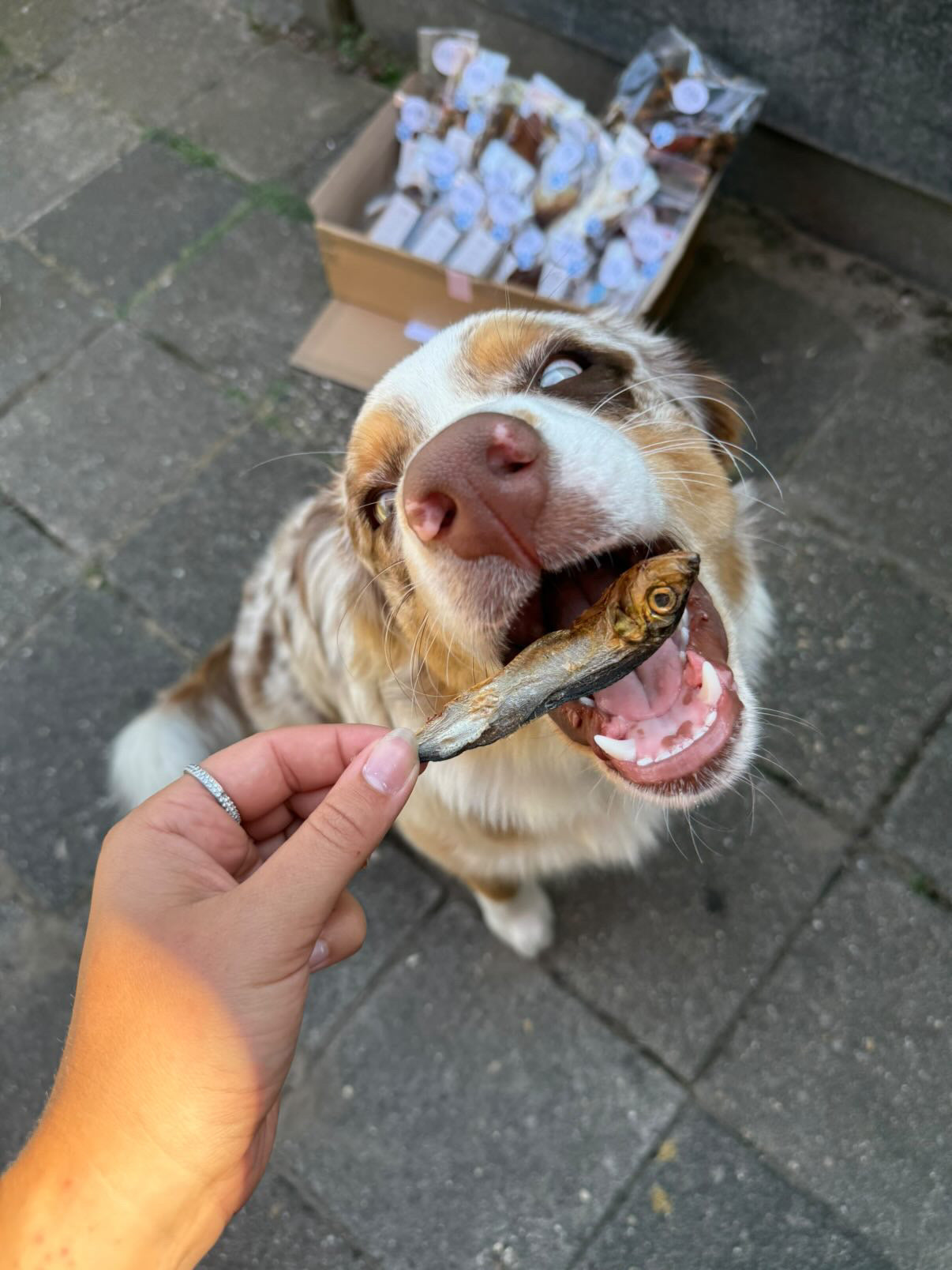 Haring de gezonde, omega-3-rijke snack voor jouw hond! Deze Haring-snack is een smakelijke traktatie voor uw hond, met een lengte van ongeveer 6 tot 10 cm (afhankelijk van het stuk). Haring is een voedzame en gezonde keuze, boordevol gezonde vetten en natuurlijk rijk aan Omega 3. Deze vetzuren ondersteunen de gezondheid van de vacht, gewrichten en het hart van uw hond. Daarnaast bevat haring waardevolle vitaminen en mineralen die bijdragen aan een algehele goede gezondheid. Een heerlijke snack die niet alleen lekker is, maar ook goed doet voor uw hond! Herkomst: Haring uit de EU.