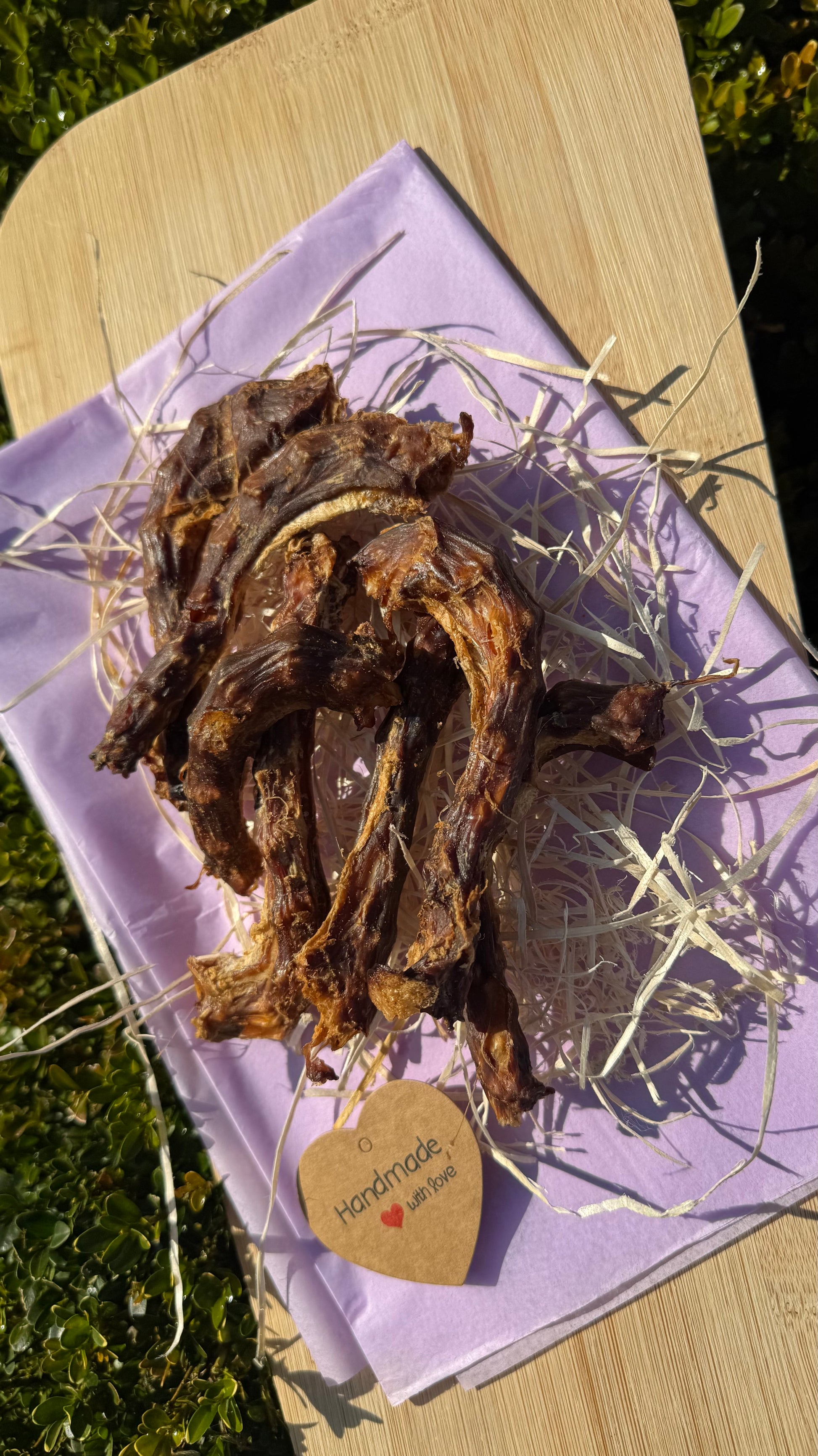 Onze kippennekken zijn een heerlijke en gezonde snack voor je hond, boordevol natuurlijke glucosamine. Dit kraakbeenrijke onderdeel van de kip is niet alleen lekker, maar ondersteunt ook de gezondheid van de gewrichten van jouw hond.